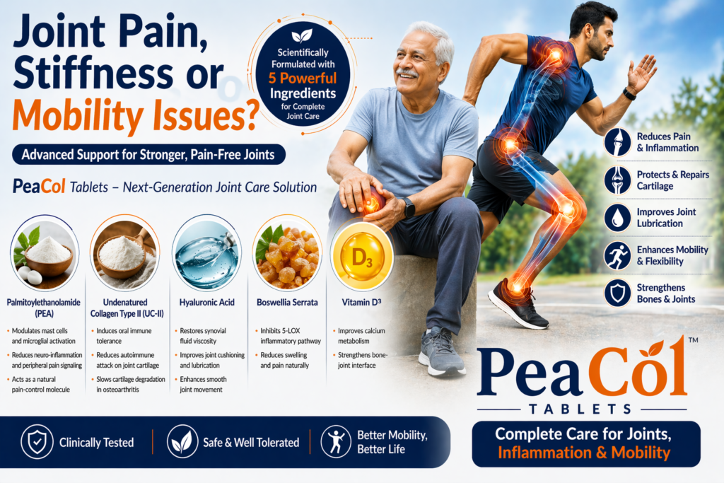 A new generation solution like PeaCol Tablets by Aten Remedies is designed to support joint health, reduce inflammation, and improve flexibility—all in one formulation.